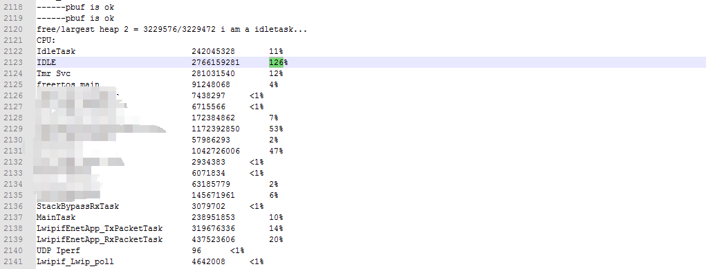 In the MCU+SDK v09.01 for AM64x device, while using the vTaskGetRunTimeStats, after some time (after ~1 hour) it will exceed the 100% of CPU usage.